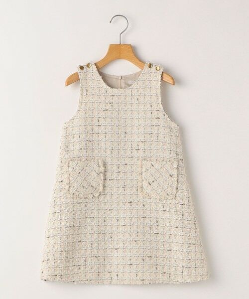 キラキラした上品なラメ糸を織り交ぜ、様々な糸を織り込んだツイード素材を使用したジャンパーワンピース。