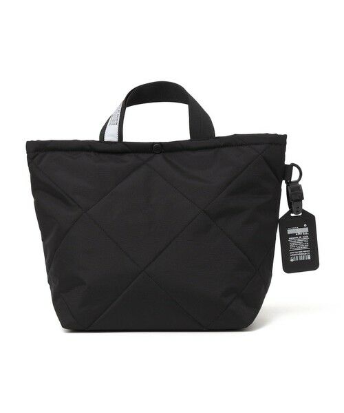 スマートフォンや財布、鍵など、必要最小限の荷物を収納できる小型サイズのキルティングトートバッグ。