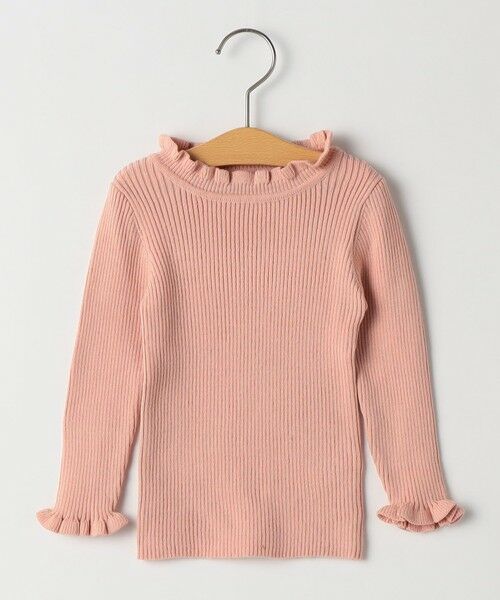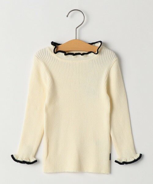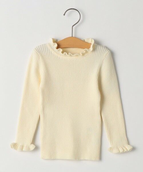 首元にフリルをあしらった可愛らしいリブニットで、おしゃれ女子の心をくすぐる一着♪