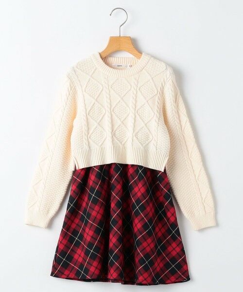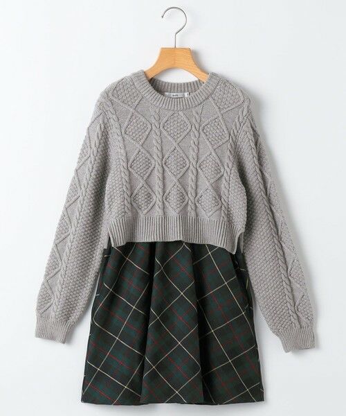 SHIPS KIDS:140〜150cm /〈洗濯機可能〉ケーブルニット ドッキング ワンピース