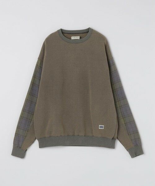 両袖をツイルチェック生地で切り替えたサーフライダースウェットシャツ。