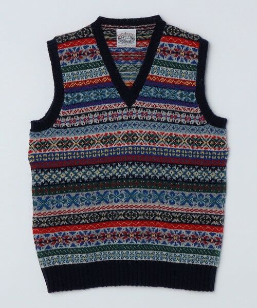 様々な糸を使用した模様が特徴のフェアアイルニットベスト。