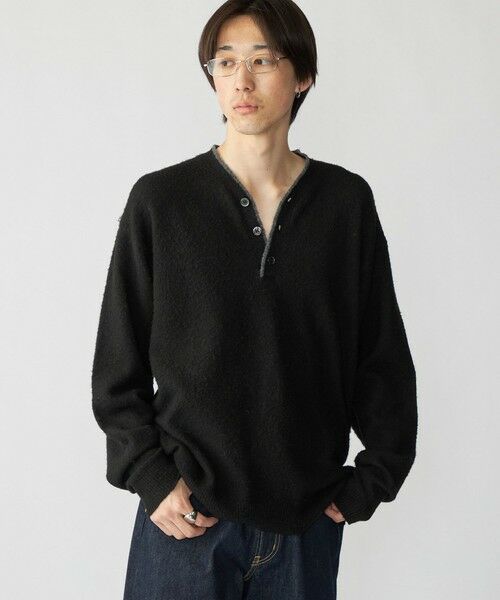 1枚でサマになる様に襟元を微配色にして最後に起毛加工を施しました。