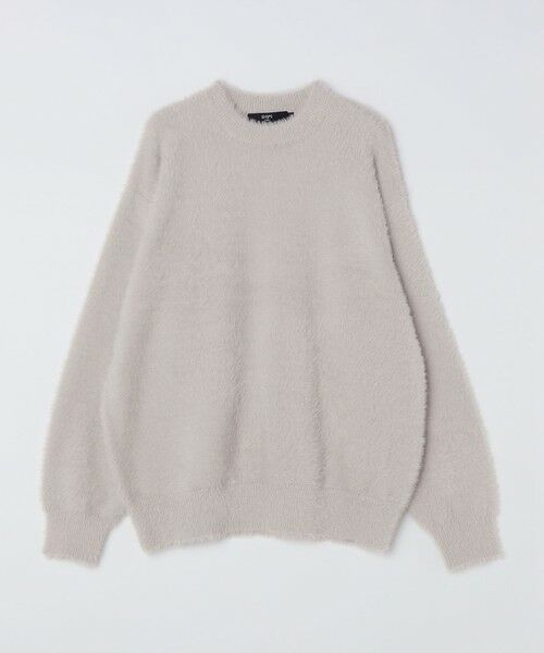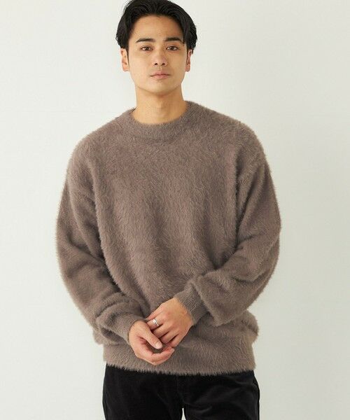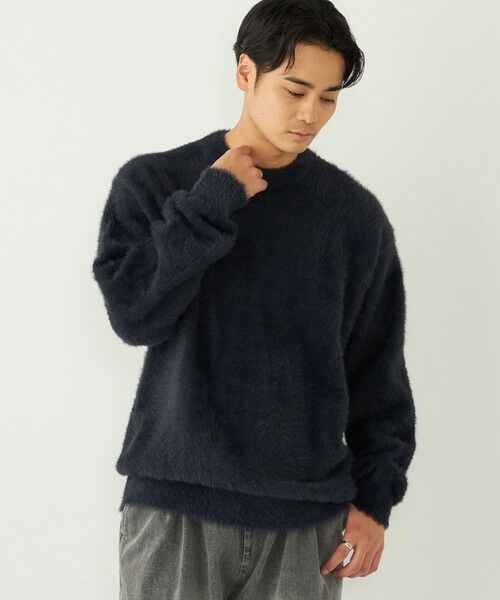 毛足の長いシャギー糸を使用したクルーネックニット。