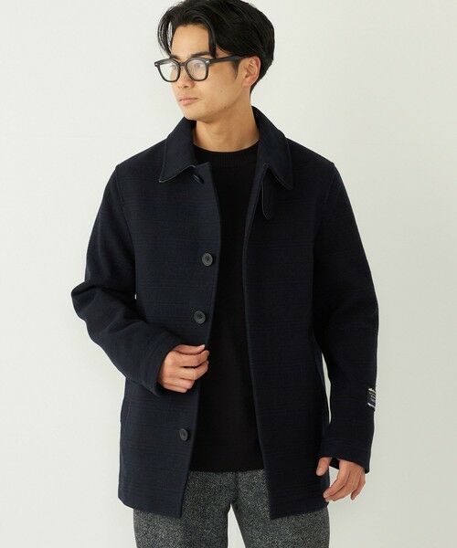 SHIPS Colorsで毎シーズンご好評いただいているチェック柄を採用した毛100%のコートに、今季はシングルタイプのピーコートが入荷!