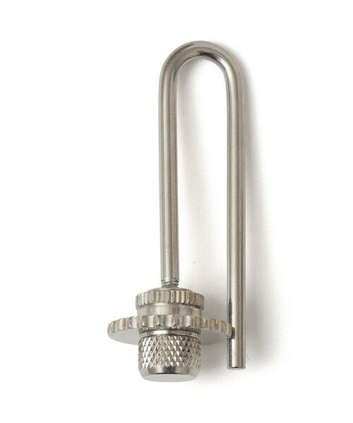 U字型の細めのシャフトに切削で作られたヘッドパーツが鍵をしっかりホールドする、メカニカルなキーリング。