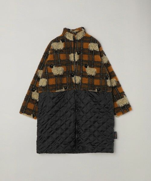 総柄フリースとキルティングのコンビデザインが特徴のコートです。