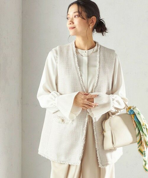 トライスピン 杢 ツイード パール モチーフ ボタン ジャケット(品番:317-01-1005)