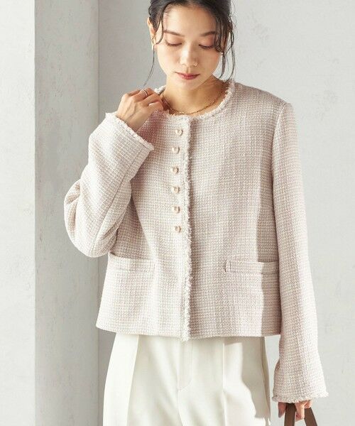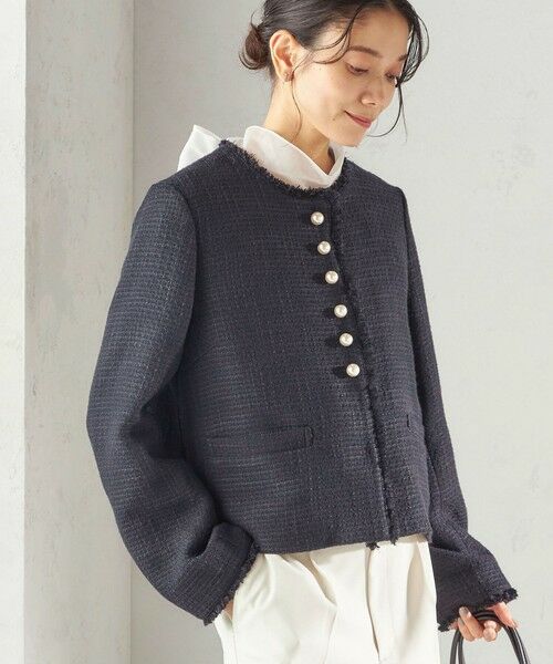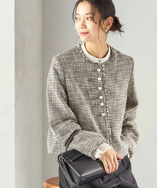 《予約》トライスピン 杢 ツイード パール モチーフ ボタン ジャケット(セレモニー対応可)