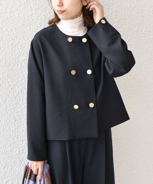 シンプルなデザインで、洗練された着こなしが叶うノーカラージャケット。