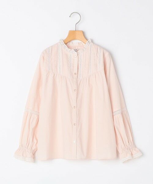 袖口、襟元にピンタックとレースをあしらった、女の子らしい上品なデザインが特徴。