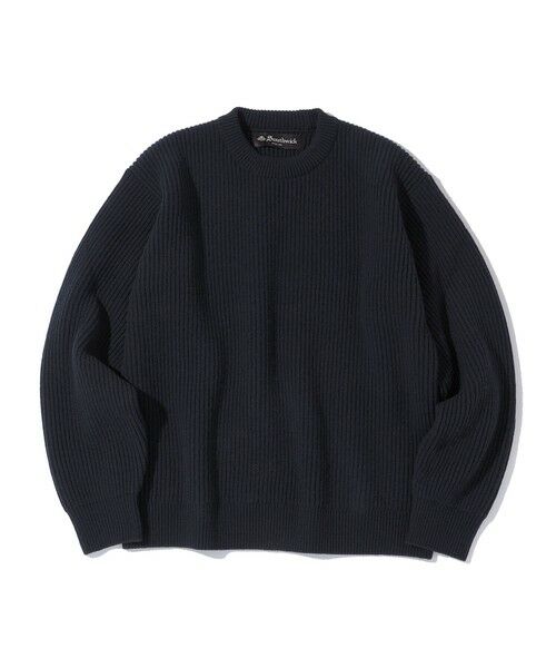 クラシックな雰囲気のクルーネックニットを現代的にアップデートしたアイテム。