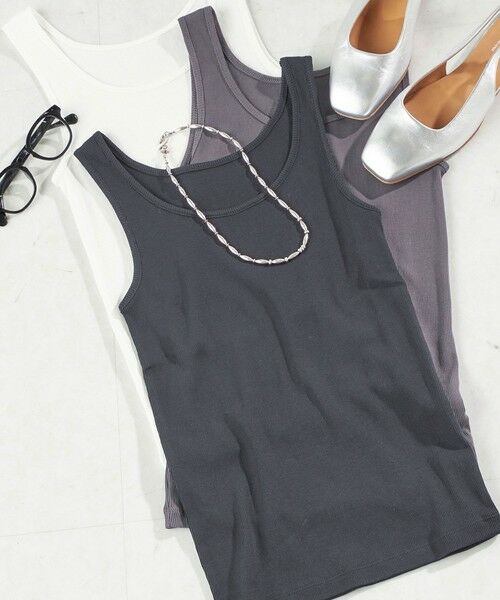 程良いフィット感と女性らしいデザインが魅力のリブタンクトップ