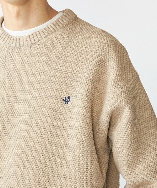 ニットは柔らかな肌触りで着心地の良いざっくりとした変形鹿の子編みを採用し、胸元には、SHIPSで使用している文字を取り入れ、水鳥をイメージした、一からデザインを起こしたSHIPSオリジナルのロゴの刺繍が入り、デザインアクセントに。
