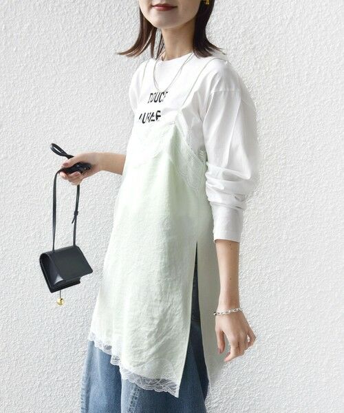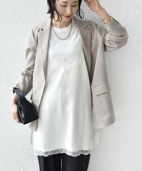 華やかなレースと、ほどよい表面感のあるサテン素材を組み合わせたキャミソール。