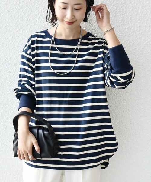 袖のリブは長めに設定しており、ワイドボーダーで一枚で着映えるデザインです◎
