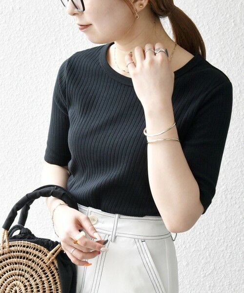 SHIPS any:〈洗濯機可能〉テレコ リブ ハーフスリーブ TEE
