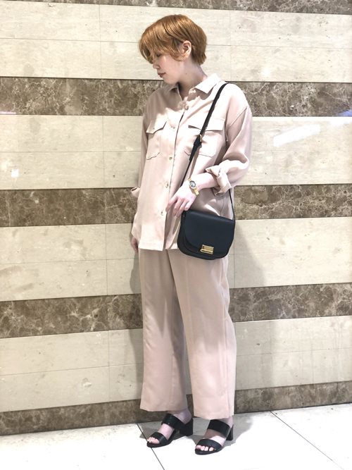 トレンドのセットアップを春カラーで爽やかに。 小物は黒で大人っぽくまとめました。 モデル身長:162cm