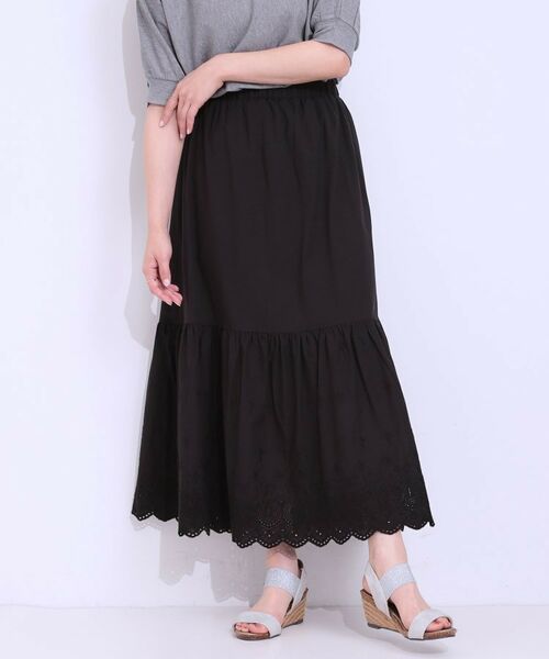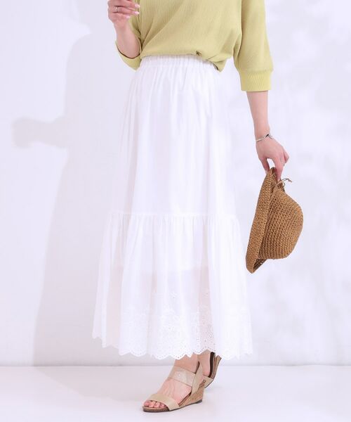 裾の刺繡レースが上品で華やかなティアードスカートです。