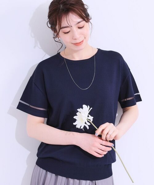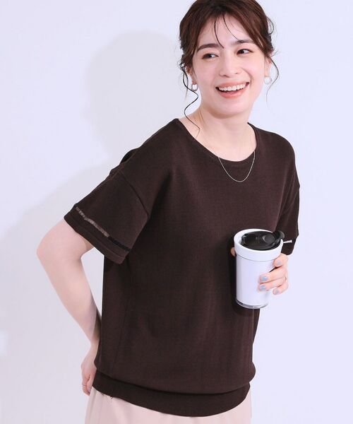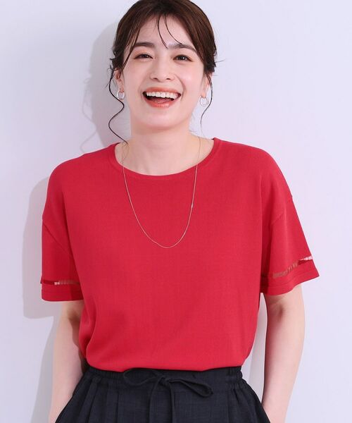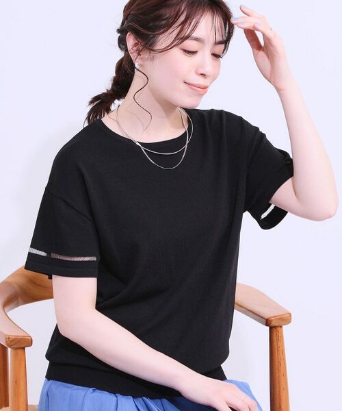【S-LL/洗える/UV】お袖シアーでヘルシーに フレアスリーブサマーニット
