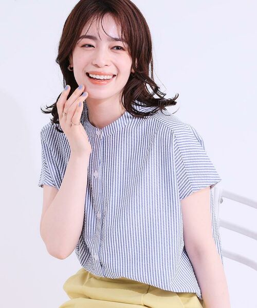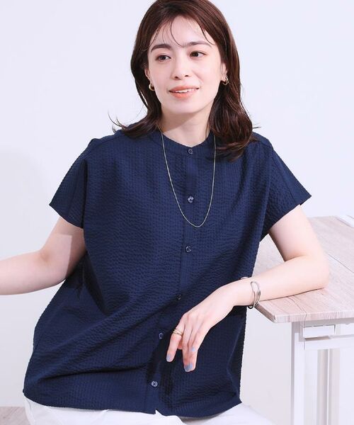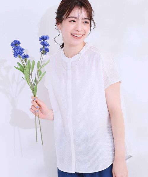 凹凸の表面、清涼感ある素材を使用したブラウス。