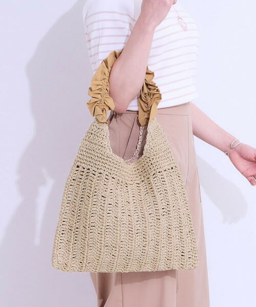 【デザイン】夏らしい素材感のトートバッグです。ハンドル部分をフリルにしてフェミニンな雰囲気に仕上げました。シンプルなスタイリングのポイントにおすすめです。【仕様】・ポケット数:内側×2・A4ファイル収納可※照明の関係により、実際よりも色味が違って見える場合があります。また、パソコン・スマートフォンなどの環境により、若干製品と画像のカラーが異なる場合もございます。本商品は、ご注文確定後に取り寄せにてお客様への出荷手配をさせていただきますので、お届けまでに7~10日前後かかる場合がございます。また、商品は他社サイトと在庫を共有しているため、ご注文いただいた商品が欠品となり、キャンセルとなる場合がございます。