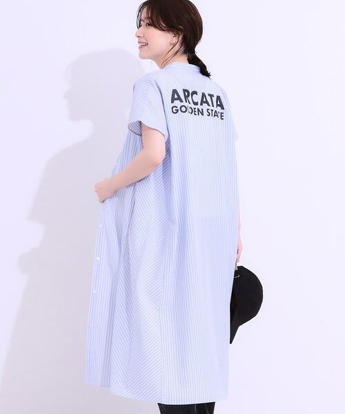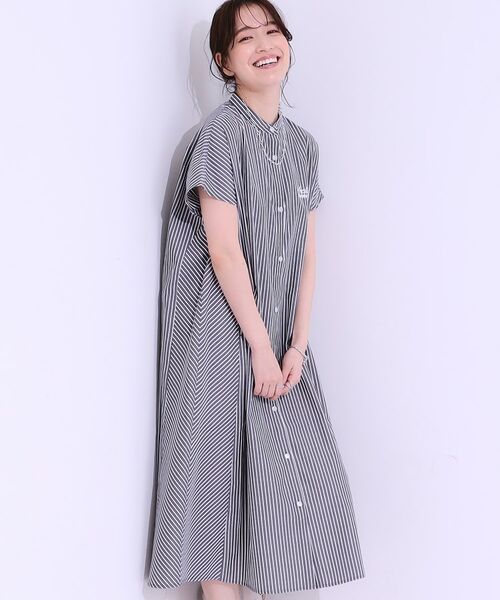 バックロゴが目を惹く、夏らしいフレンチスリーブのシャツワンピース。