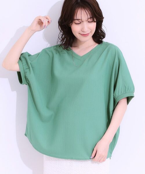 首元とお袖口のリブデザインがポイントになったドルマンスリーブのブラウス。