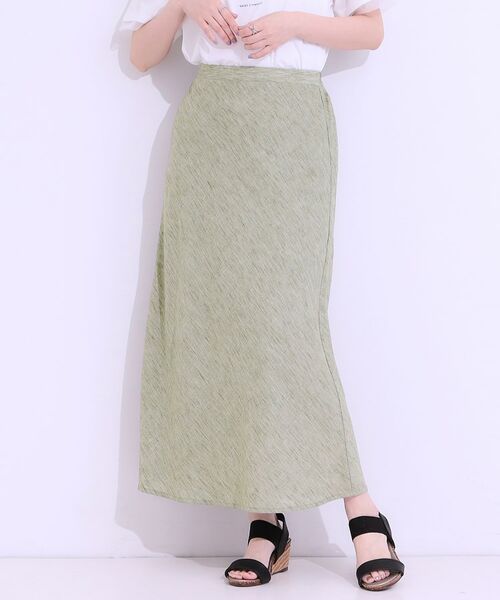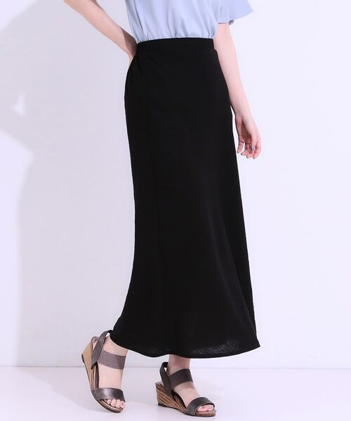 さらりとしたリネンライクな素材で夏でも涼し気に穿いていただけるセミフレアスカートです。