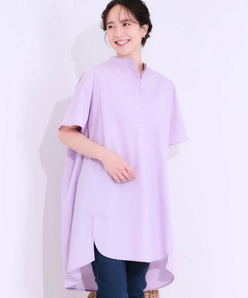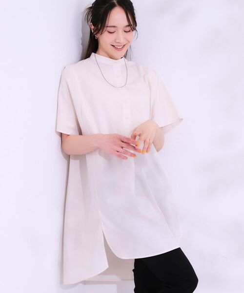 素材の張り感を活かしたまっすぐのシルエットで体型をきれいに見せ安心して着ていただけます。
