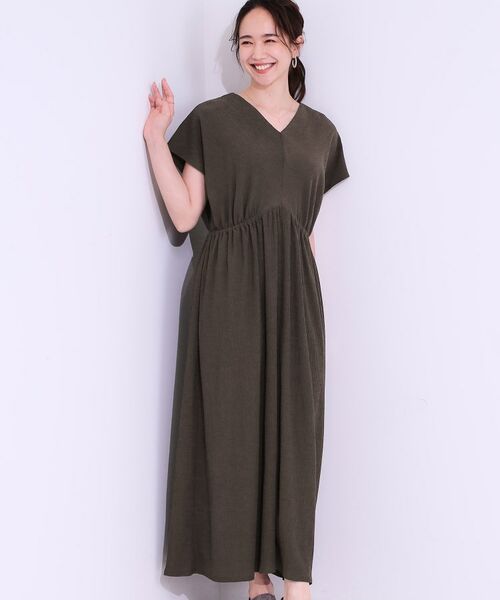 さらりとした楊柳素材が涼しげなデザインワンピース。