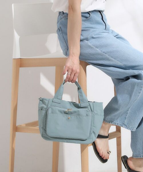 フロントの大きめな立体ポケットがポイントのトートバッグです。