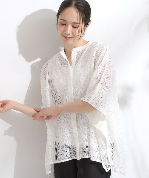 今注目のレースシャツを、人気のポンチョ型シルエットで仕上げました。