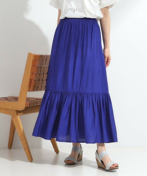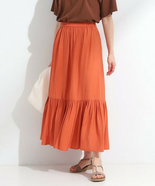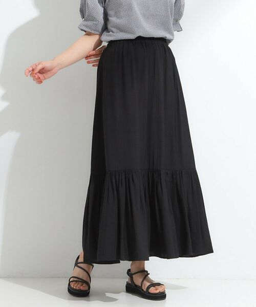 裾の1段ティアードデザインが程よいボリューム感で大人も履きやすい1枚。