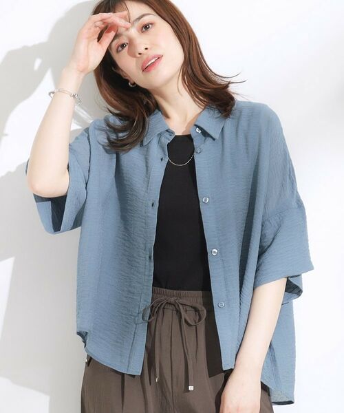 光沢感のあるワッシャー素材で、しぼしぼとした表面感のシャツです。