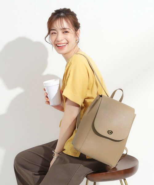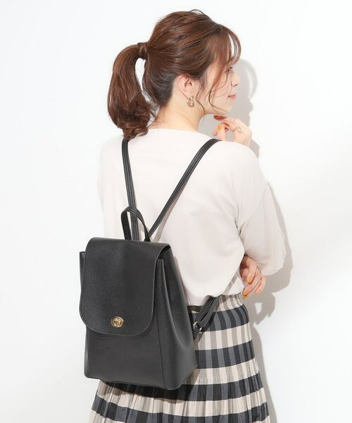 フラップ部分の金具をポイントにして、きれいめに仕上げました。