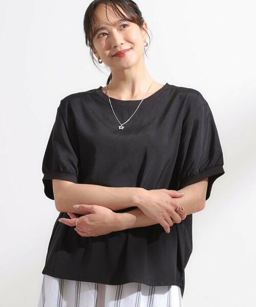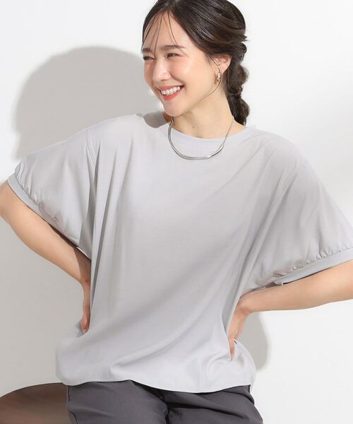 【ひんやり/洗濯後しわになりにくい】リブ切り替えドルマンブラウス