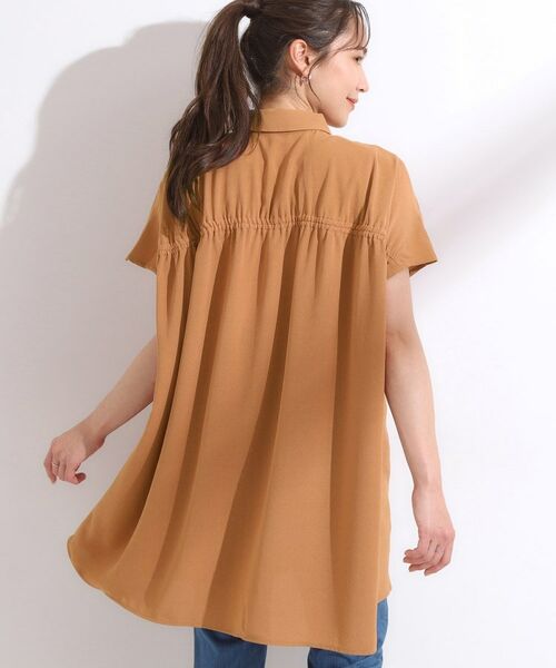 【S-LL/ひんやり】さらりとしたタッチが心地よい バックギャザーブラウス