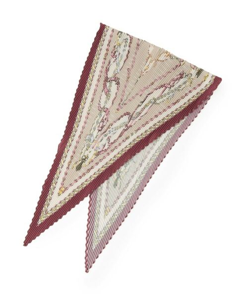 【デザイン】プリーツ加工なのでシワなどが目立ちにくく使いやすいスカーフです。首元に巻くだけでなく、バッグなどに巻いても華やかになります。※照明の関係により、実際よりも色味が違って見える場合があります。また、パソコン・スマートフォンなどの環境により、若干製品と画像のカラーが異なる場合もございます。本商品は、ご注文確定後に取り寄せにてお客様への出荷手配をさせていただきますので、お届けまでに7~10日前後かかる場合がございます。また、商品は他社サイトと在庫を共有しているため、ご注文いただいた商品が欠品となり、キャンセルとなる場合がございます。