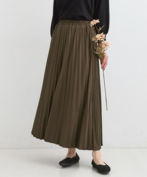 ベーシックでシンプルなプリーツスカートは、どんなトップスにも合わせやすいデザインです。