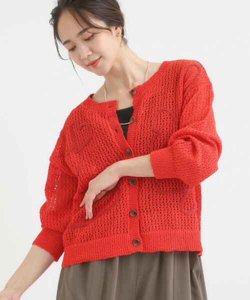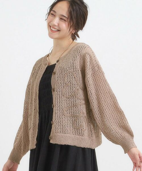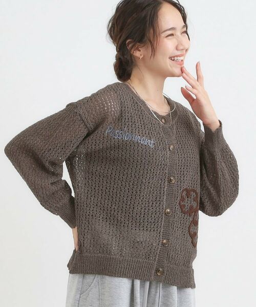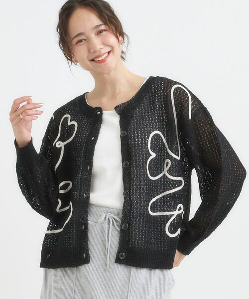 メッシュの編地に人気のコード刺繍を施した柄アソートカーディガン。