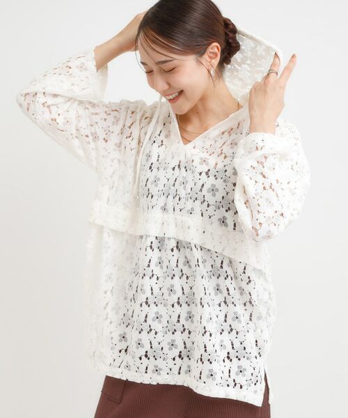 今年らしいレース素材で、秋にも着やすいフーディシルエットに。