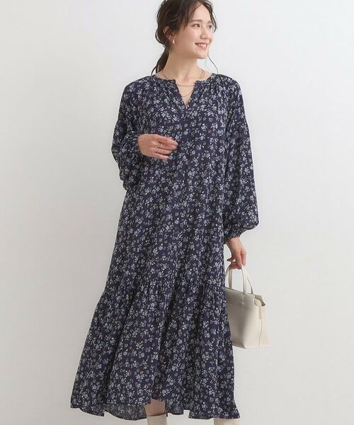 前後2WAYで着用できる、マキシ丈の花柄ワンピース。
