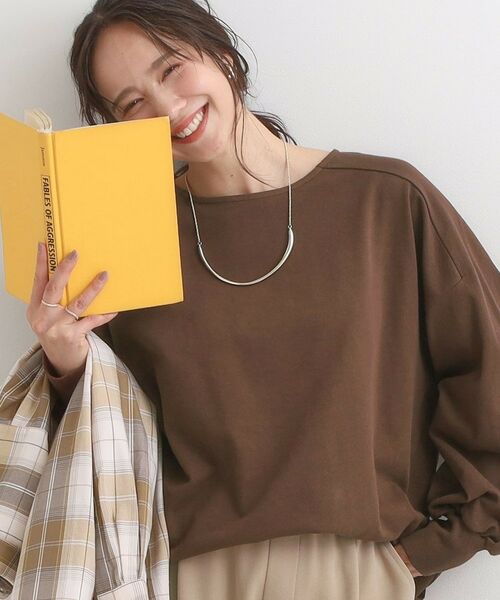 スラックス系のパンツ合わせで、今っぽいスタイリングに。