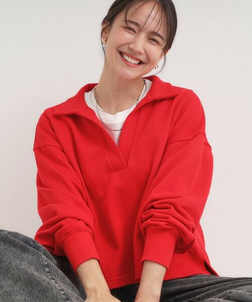 【なめらかタッチ/洗濯機可】スキッパーポロスウェット