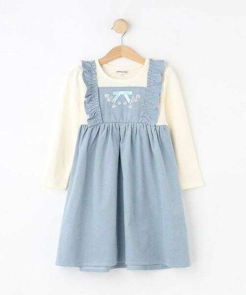 コーデュロイのワンピースにインナーをドッキングしたワンピース。