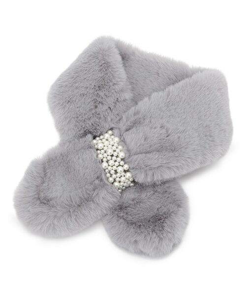 ふんわりしたフェイクファーにフェイクパールをあしらったティペットです。