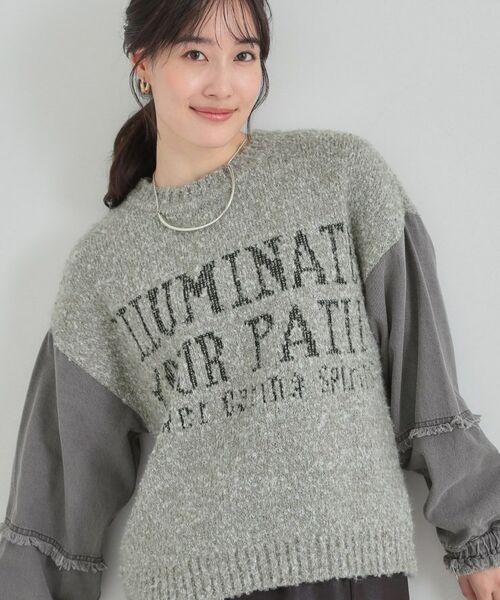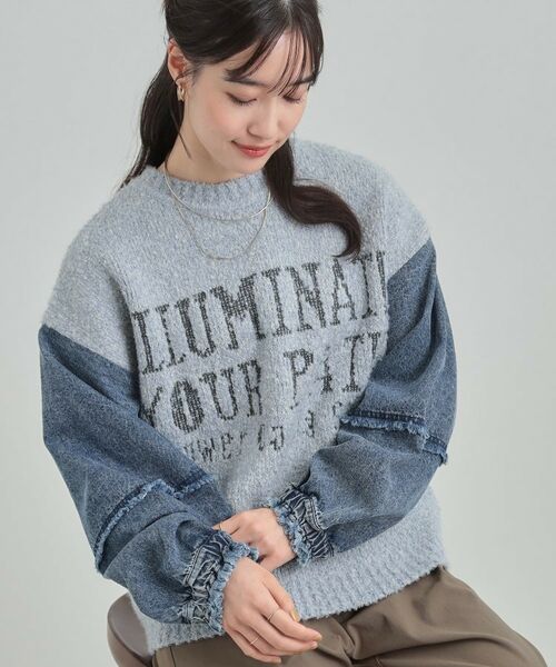 袖がデニムの異素材使いになったニットプルオーバー。