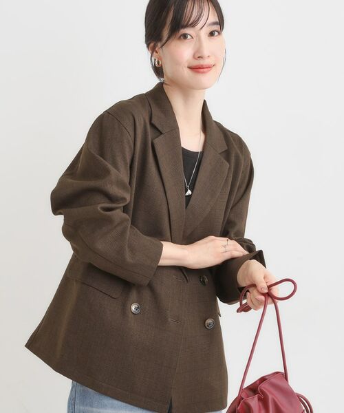 【セットアップ可】チェック柄 ダブルブレストテーラードゆるジャケット
