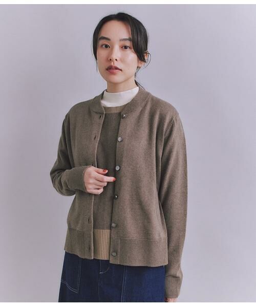ブルゾン感覚で羽織れるニットカーディガン。袖口と裾は、表面は一見リブ仕様に見えますが、裏面を総針編みにすることで締めつけ感を軽減。ストレスフリーな着心地に仕上げています。長すぎず短すぎないバランスで、パンツにもスカートにも合わせやすい丈感に。ニットベスト(品番:37796721)と連動させ、前立ての裏の見返しやポケットの内側をニットベストと同じ配色にしております。